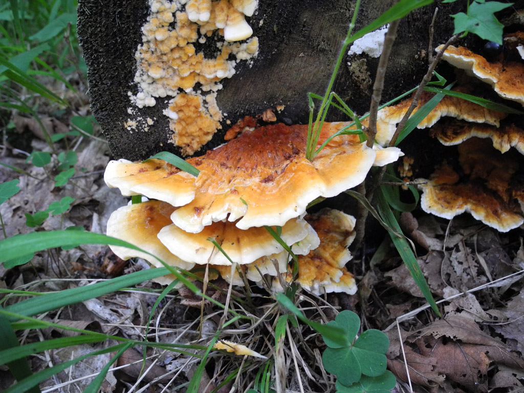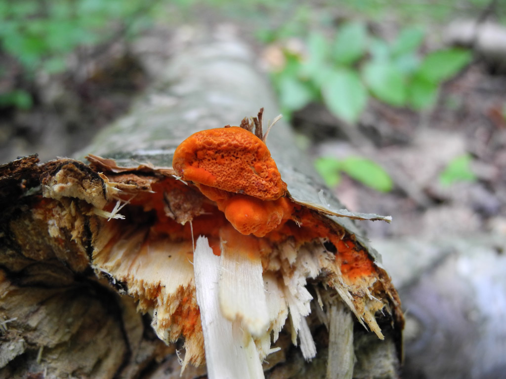 und der südliche Verwandte, der sich immer weiter nach Norden ausbreitet, Pycnoporellus fulgens, der Leuchtende Weichporling. Liebe Grüße
