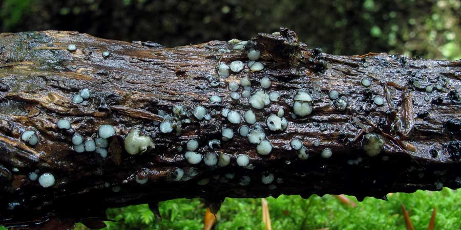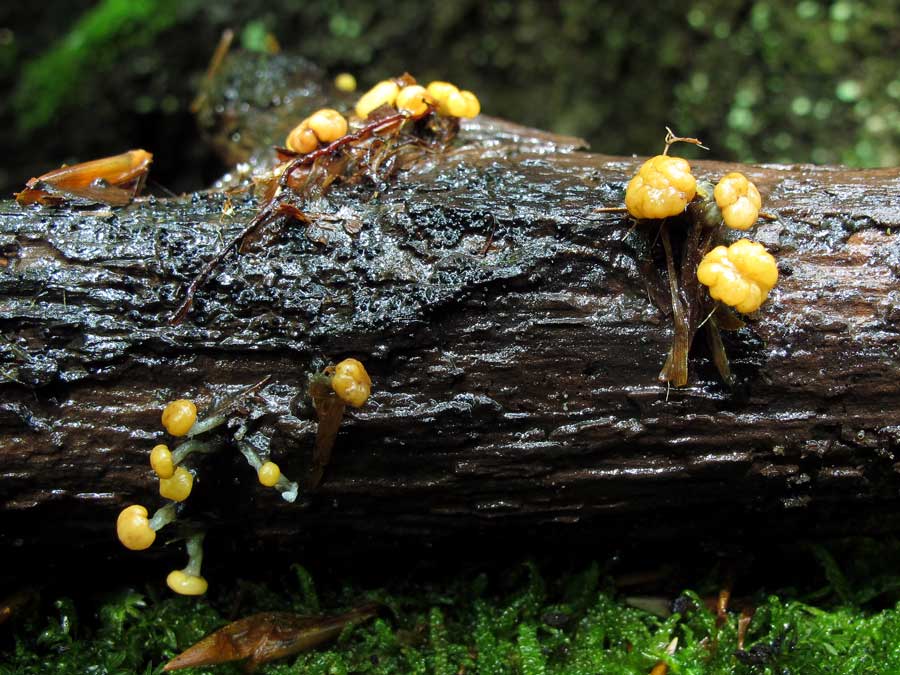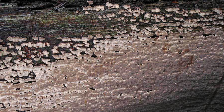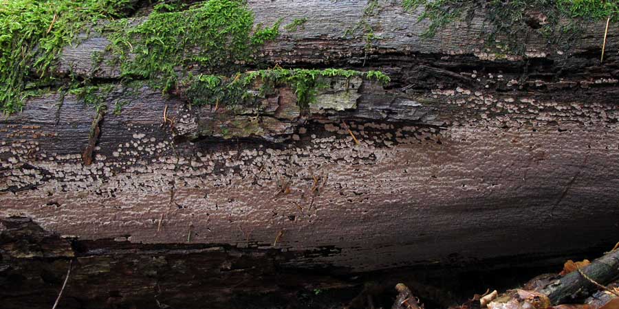 ... den Mosaik Schichtpilz Xylobolus frustulatus. Diesmal ohne Mosaik da gerade am wachsen und schwitzen. Einen ganz besonders schönen Nachweis der Stein(pilz)mykorrhiza konnte ich auch finden.