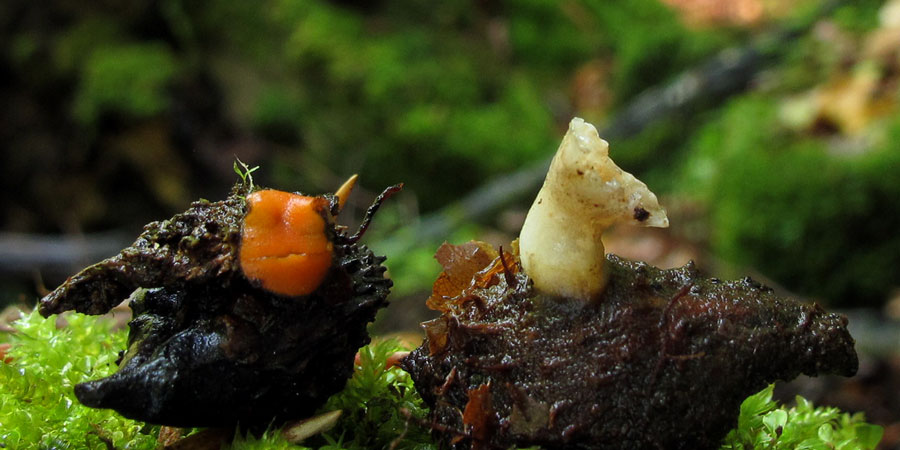 Das sollten Abgestutzte Tentakelkeulchen Vibrissea truncorum sein. Um die Wette frucktifizierten sie mit dieser Molisia spec.