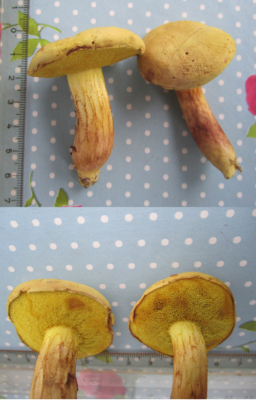 Hallöchen, Ich habe auch einen Xerocomus gefunden. Sieht für mich nach X. moravicus oder auch leonis aus, oder ist es doch eine Ziegenlippe ...? ;-) - Hut hell ockergelb, ca. 4 cm Durchmesser