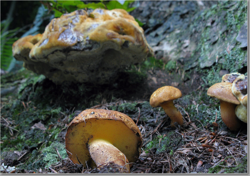- Röhrling neben Kiefern-Braunporling -- Gelbfieber -- 11. August 2013, 09:30 Uhr