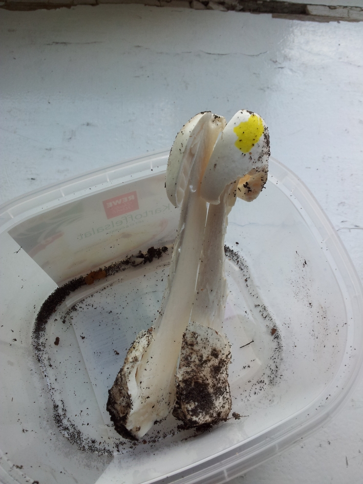 Entschuldigt bitte, dass ich so'n Brimborium mache, hab ihn aber, wie gesagt, noch nie in natura gesehen. Mikro leider unergiebig, da noch sehr jung (ohne Farbe noch nicht einmal Sterigmen zu erkennen).