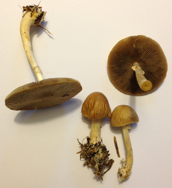 Liebe Pilzfreunde, trotz der Trockenheit und des fast vollständigen Fehlens von Pilzen gelang mir heute ein Erstfund. Auf Rindenmulch in einem kleinen Park entdeckte ich eine Gruppe von 12 Pilzen, die sich als Rinnige Ackerlinge (Agrocybe rivulosa) entpuppten. Diese Art wurde erst 2003 von M. Nauta in den Niederlanden beschrieben; ist ein Neomycet, der sich aber wohl stark ausbreiten soll.