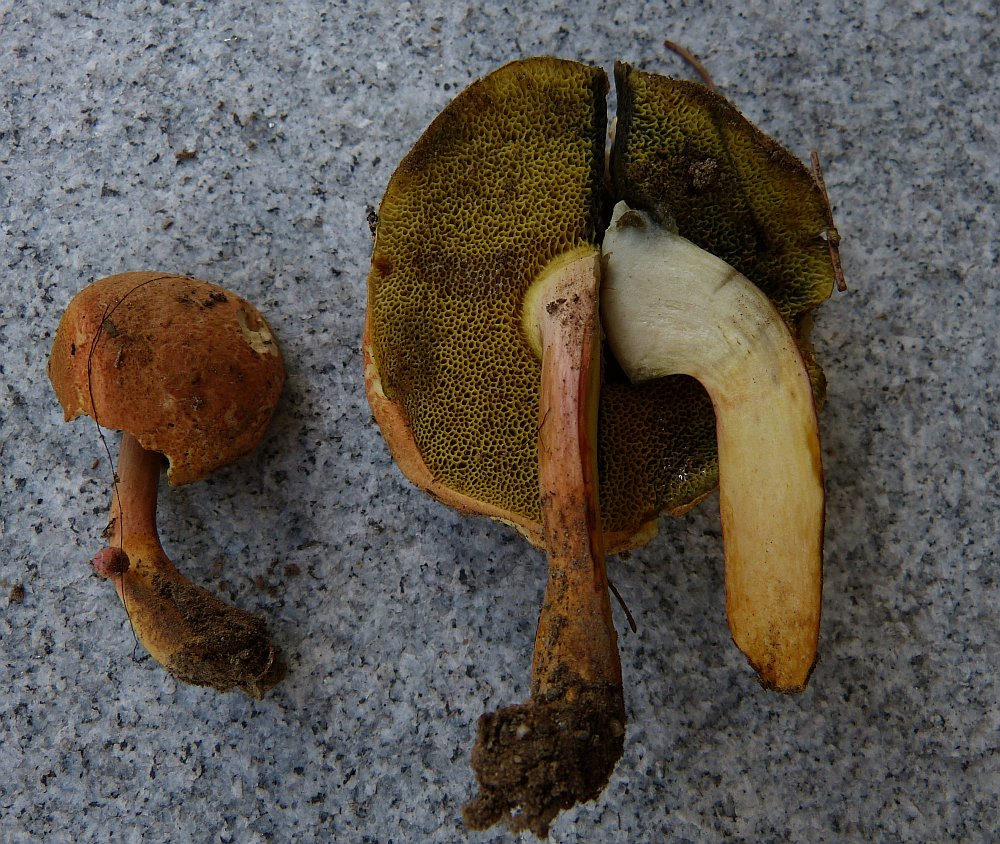 Im Feld habe ich die Pilze direkt als Xerocomus armeniacus, aprikosenfarbener Röhrling angesprochen.
