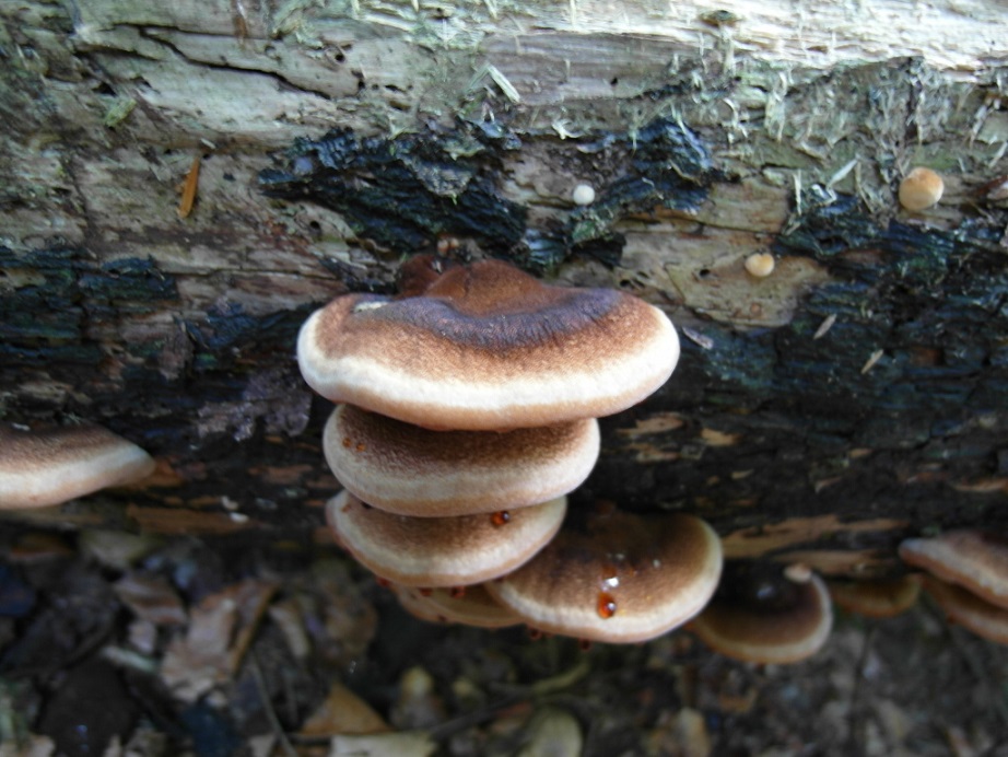 Diese Porlinge wuchsen an einer liegenden Fichte. Sie bildeten auffallende Guttationstropfen. Meine Vermutung wäre Ischnoderma benzoinum. Ich bin aber mit Porlingen nicht sonderlich bewandert...