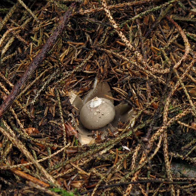 Eine neue Fundstelle des Kammerdsterns Geastrum pectinatum. Wieder auf einem alten Ameisenhaufen und nur rund 10m von