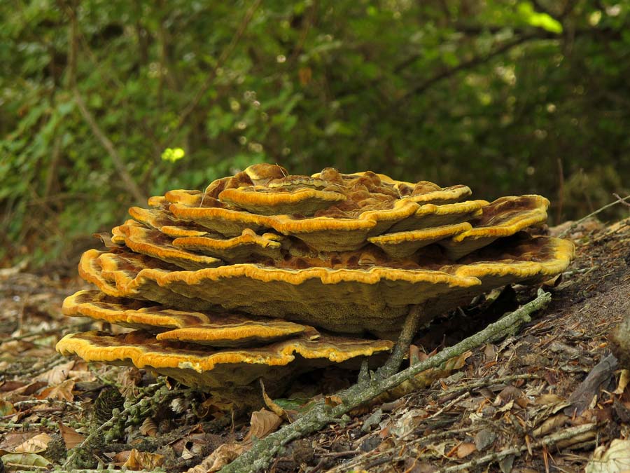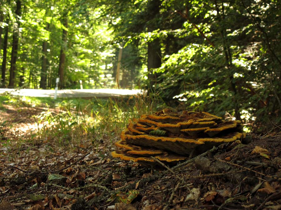 Den Anfang macht der "Lärchen" Braunporling Phaeolus schweinitzii. Seit rund zwei Wochen hab ich ihm, auf dem Weg zur Arbeit,