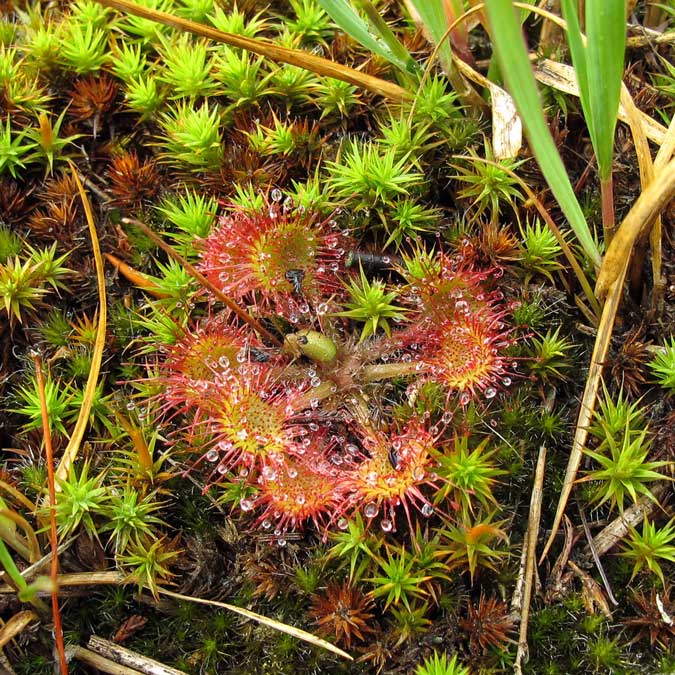 An besonderen Begleitpflanzen gabs irgend ein Bärlappgewächs und diesen Rundblättrigen(?) Sonnentau, der dort wirklich in