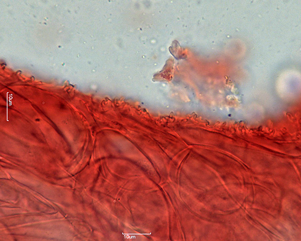 Die Sporen waren hier (8,5)9(10)x(6)7(8)µm, Basidien ohne (feststellbare) Schnallen, um 40x8 µm, ChZ 40-45x9-10 µm,