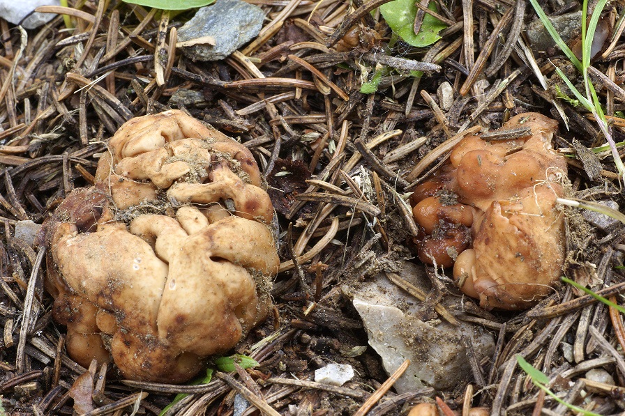 Die Sporen waren noch nicht ganz reif, trotzdem sind wir nicht zuletzt nach dem Studium eines Threads vom Hartmut hier im Forum der Meinung, dass es sich um Hydnotrya cerebriformis, die Hirnförmige Rasentrüffel handeln muss.