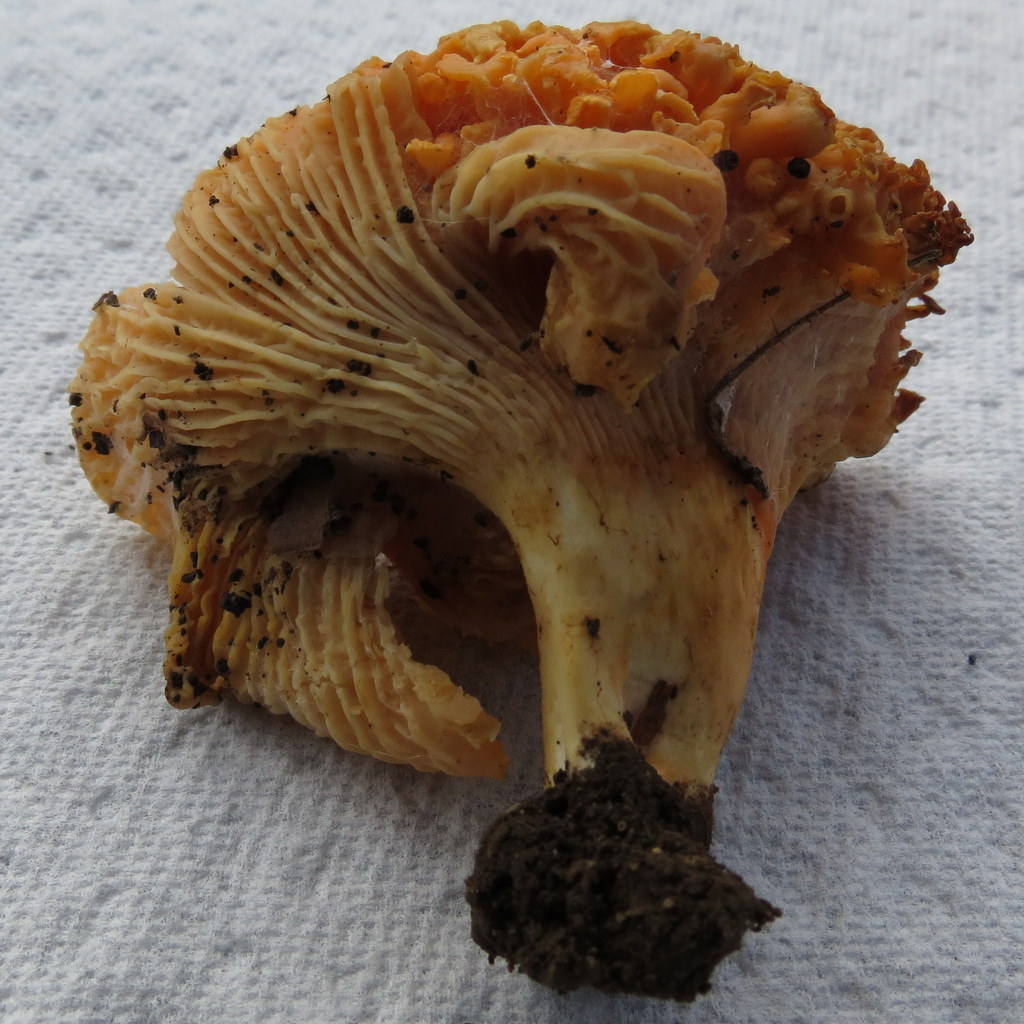 Hallo Forum Mein Pilzfreund Papa P schleppte 2 Pilze aus dem Westerwald an, die er mir auch zeigte und um meine Meinung bat. Den Sonderbaren hatte ich noch nie gesehen, bzw. kann mir sein Aussehen nicht erklären und bei dem anderen bin ich auch unsicher und schlug das Einstellen im Forum vor. Den ersten, nennen wir ihn mal Blumenkohl-Pfifferling, fand er im Laubmischwald unter Rotbuchen in einer größeren Ansammlung von Cantharellus friesii. Es standen noch mehrere Exemplare mit diesem Aussehen dazwischen. Standortfoto