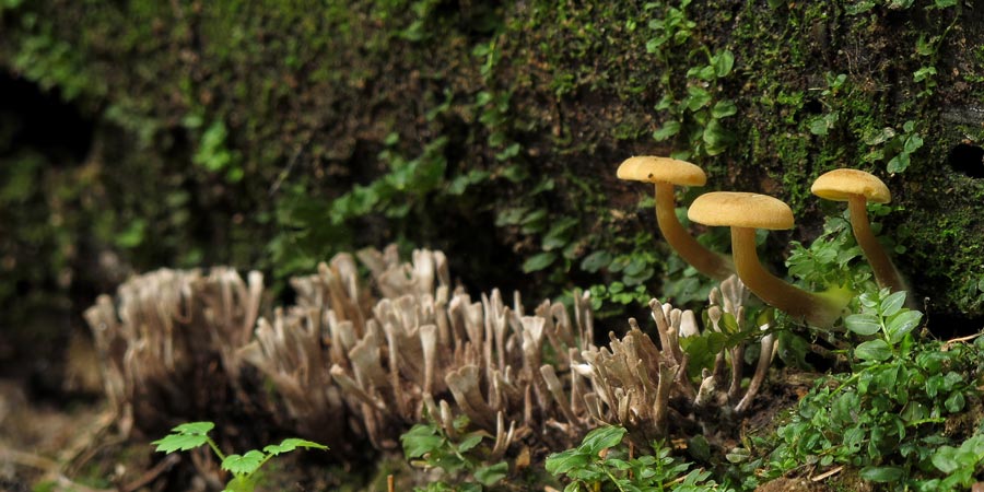 Hallo Klaas, ... alter, völlig morscher Abschnitt eines Fichtenstamms in Bachnähe ... ich glaub ich hab gerade ein Déjà-vu! Am 6. September habe ich auf einem sehr morschen Kiefernstamm in Bachnähe ähnliche Pilzchen gefunden.