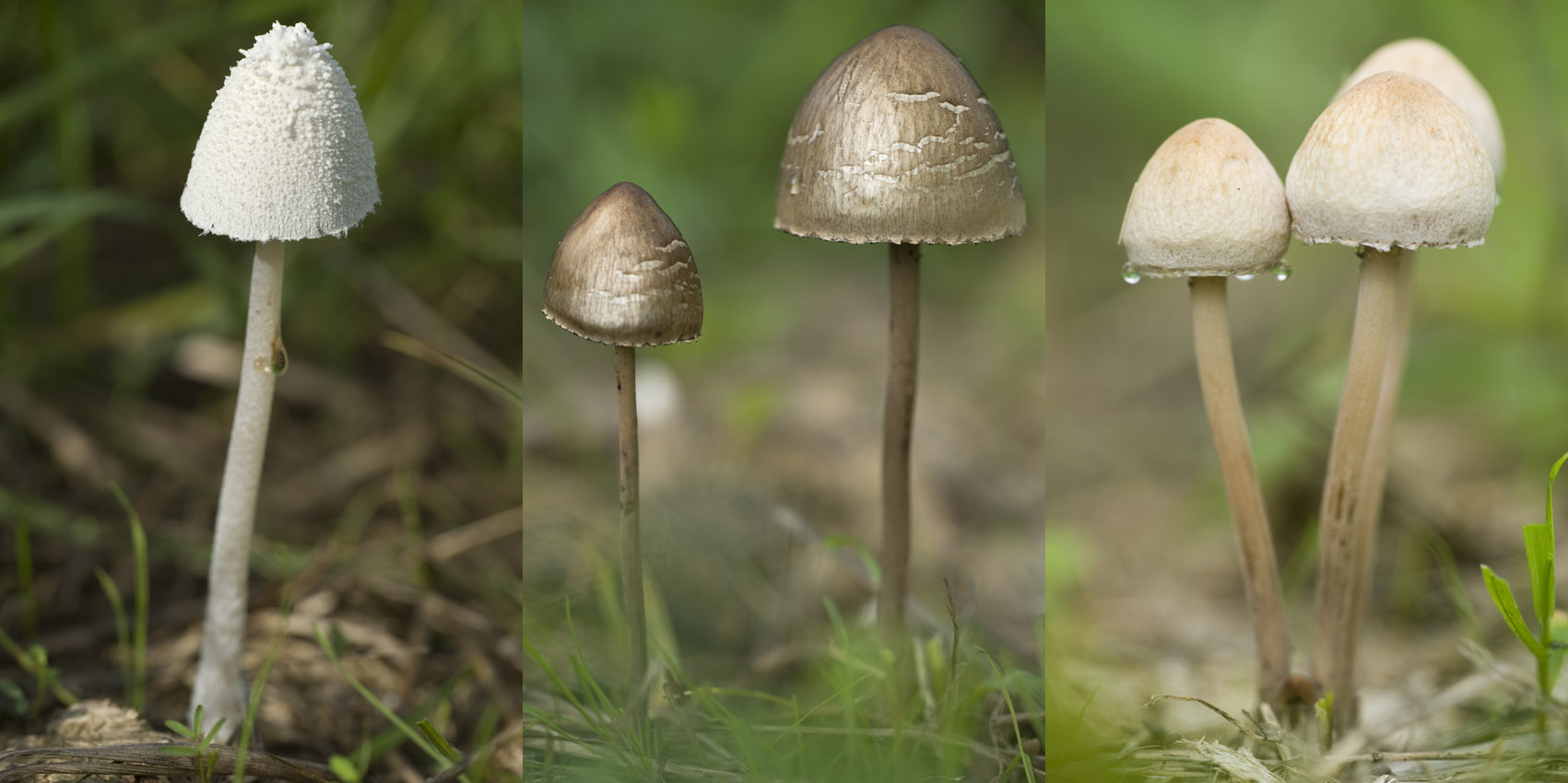 Ich vermute, dass das Bild rechts ein juveniles Exemplar des mittleren Pilzes darstellt.