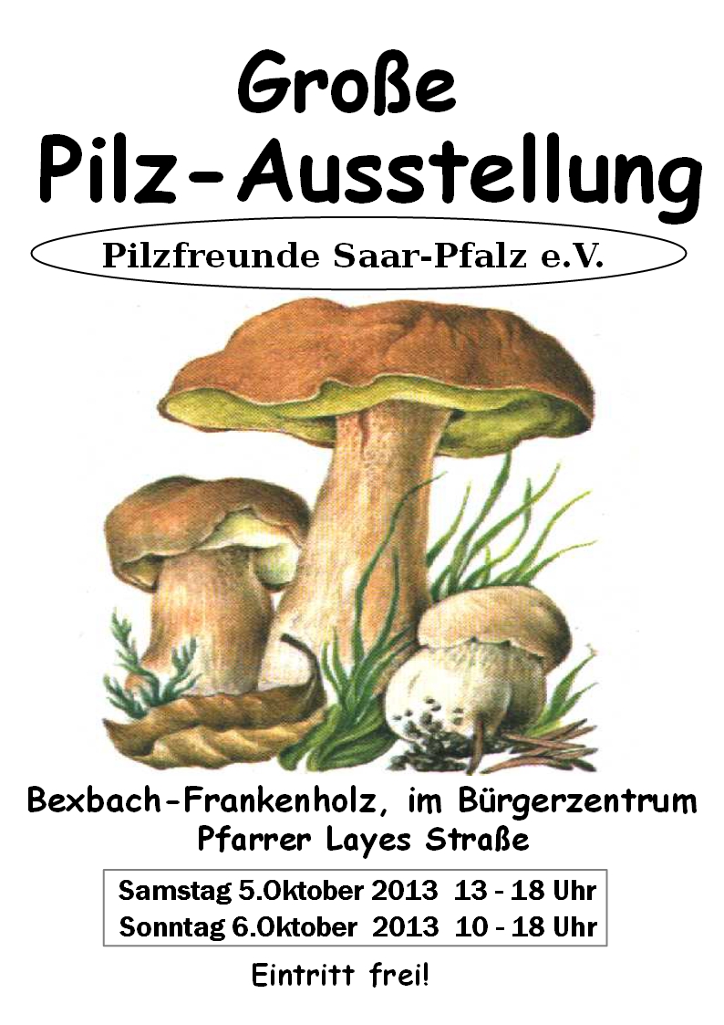Hiermit möchte ich alle Forumsteilnehmer aus dem Raum Saarland/Pfalz zu unserer diesjährigen Pilzausstellung einladen. Hier die Adresse: