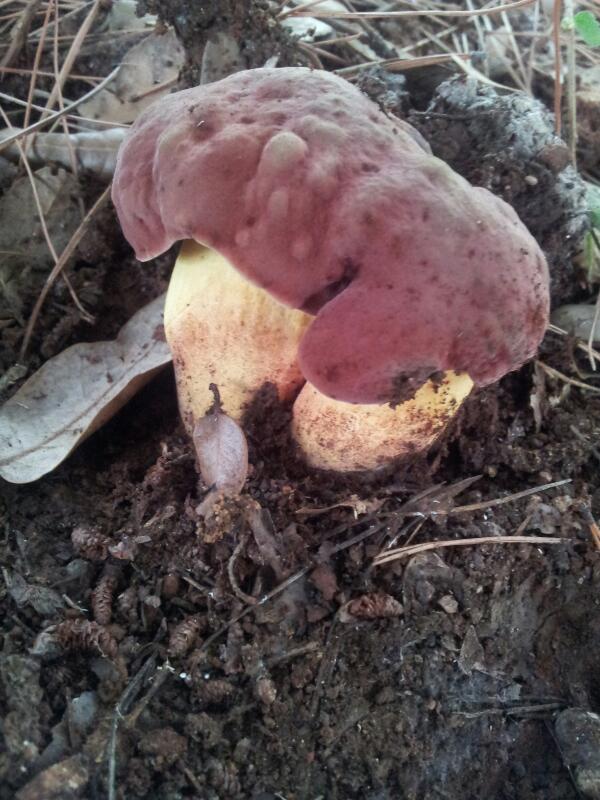 Hallo zusammen, bin gerade in Kroatien im Urlaub. Letzte Woche war es mit 26 Grad immer noch recht warm hier, dementsprechend gab es relativ wenige Pilze zu sehen. Gestern beim morgendlichen Strandlauf entdeckte ich aber eine schöne Kollektion Röhrlinge unter einer Eiche, welche ich nur der Eicheln wegen identifizieren konnte. Die Blätter sind länglich spitz zulaufend ohne die typischen Einbuchtungen. Der Hut des Pilzes war lila-rot. Der Stiel fein punktiert. Auf Berührung verfärbten sich alle Teile sehr stark blau. Hut eher schwarz. Die Farbe der Röhrenmündungen reichten von gelb bis intensiv orangerot. Da ich kein Messer dabei hatte, habe ich den FK nur längs gebrochen. Das gelbe Fleisch verfärbte sich sofort blau. Beim Schnitt einen Tag später auf dem Hotelzimmer zeigte sich keine Verfärbung mehr. Stielbasis nun schwarz. Der Geschmack war mild. Falls noch weitere Fragen anstehen... es kommen wohl noch einige FK nach. Sorry, dass ich die Fotos einzeln poste... am Smartphone ists leider etwas umständlich. Gruß Wirderer