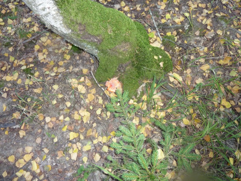 Ebenso ein paar Artgenossen, und, zu meiner grossen Freude, den jungen Steinpilz den man oben am Übersichtsfoto sieht. Bzw bin ich mir noch immer nicht 100% sicher. Ich hätte zuerst gedacht das wäre auch ein Birkenpilz, aber die schwarze Zeichnung am Stamm fehlt. Ebenfalls riecht er anders, eher nach Steinpilz, denn die Birkenpilze riechen ja nach nix. So, nun noch eine kleine Gemeinheit meinerseits. Ich hab mir die Location einer Glucke markiert, wo ich nach 1, 2 Wochen mal wieder hingeschaut hab. Das Wachstum der Teile ist echt langsam, vll 1/3 grösser ist sie in der Zeit geworden. Hier ein Bild: