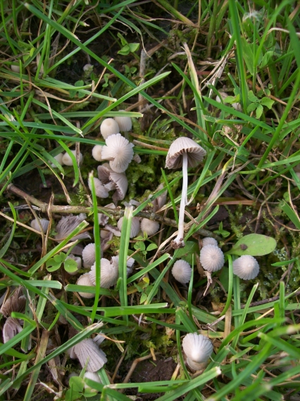 Hallo Frank, : Was bedeutet denn büschelig im Bezug auf den Coprinus? Büschelig heißt, dass mehrere Pilze aus einem Strunk wachsen. Coprinellus disseminatus wächst eher rasig, gesellig, das heißt, mehrere Pilze dicht beieinander aber doch einzeln (siehe Bild). Ein noch wichtigeres Merkmal ist, dass C. disseminatus viel kleiner, dünner, gebrechlicher ist und eine graue Farbe hat. : Bei dem Stäubling bin ich mir auch nicht sicher... ich hatte bisher stets