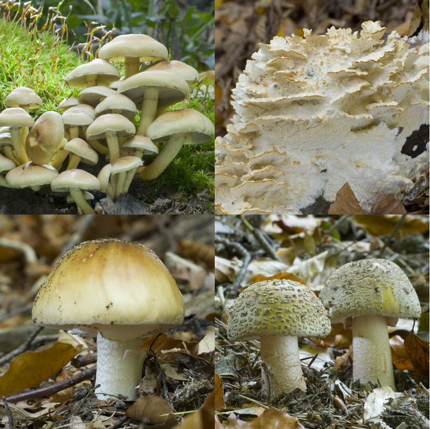 Der Pilz unten links hatte ein Höhe von ungefähr 7cm und bei den beiden unten rechts vermute ich eine Amanita-art, aber welche? Grüße Frank