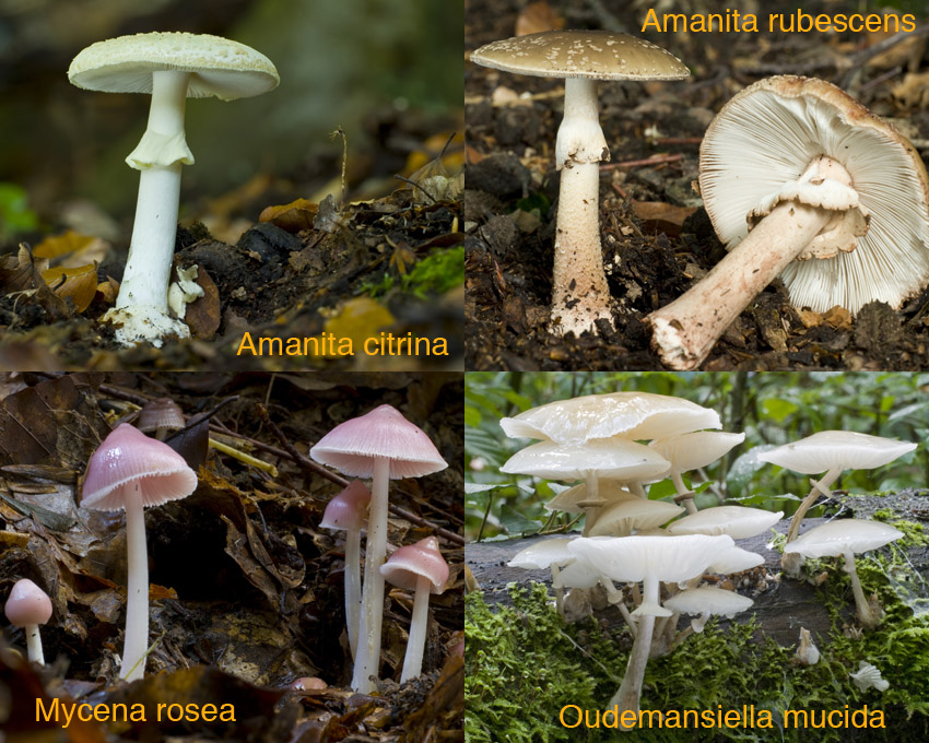 Der Schleimrübling saß an liegendem Buchenholz, die Amaniten standen an einem trockenen Hang mit Eichen und Buchen.