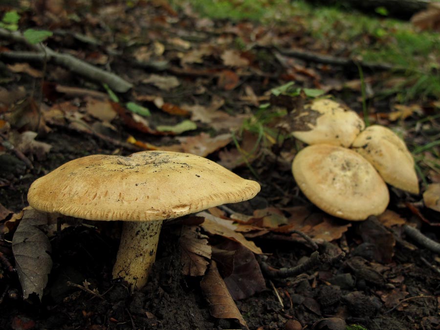 Gerippter Ritterling Tricholoma acerbum Standort ist ein lichter teils grasiger Eichen-Buchen-Elsbeeren Wald in termophiler Lage über leicht basischem Intrusivgestein.