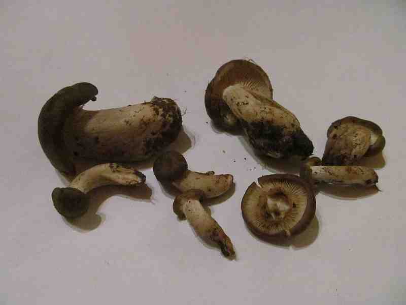 Bei diesen Exemplaren bräuchte ich auch Hilfe. Meine Vermutung : brauner Büschel-Rasling ? Die Pilze wuchsen büschelig auf einer Wiese. In der Nähe ist eine Hainbuchenhecke, Birken, Weißdorn und Ahorn. Die Pilze erinnern mich von der Form und Schönhei(?) an den Maipilz. Sie sind sehr klein,max. 3-4cm. Das Fleisch ist fest, fast am Kopf zäh. Der Stiel ist gräulich, der Hut dunkelbraun, bei jüngeren etwas gräulich. Die Stiele sind nicht gerade, eher verdreht.