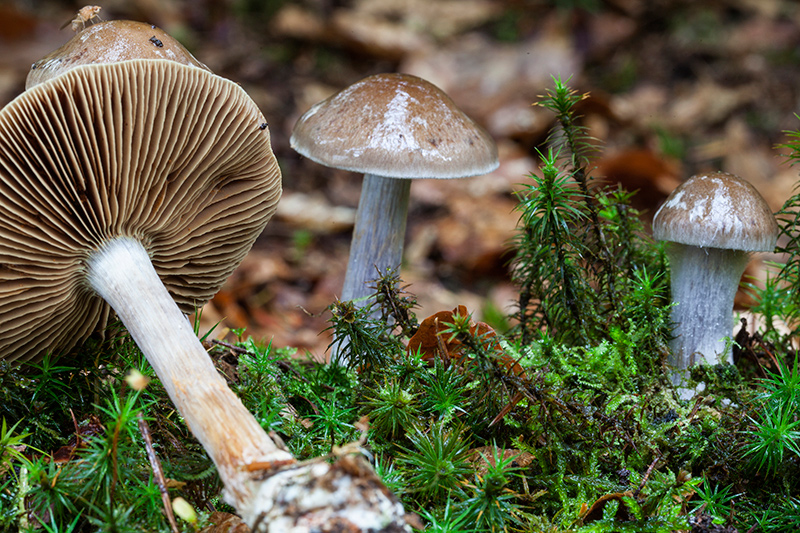 Liebe Pilzfreunde, vorgestern fand ich zwei verschiedene Cortinarien, bei deren Bestimmung ich eure Hilfe benötige. (1) Ca. 10 FK unter Buchen und Kiefern auf saurem Boden. Hutdurchmesser bis 70 mm. Hut jung graubräunlich, älter (dunkel-)braun.