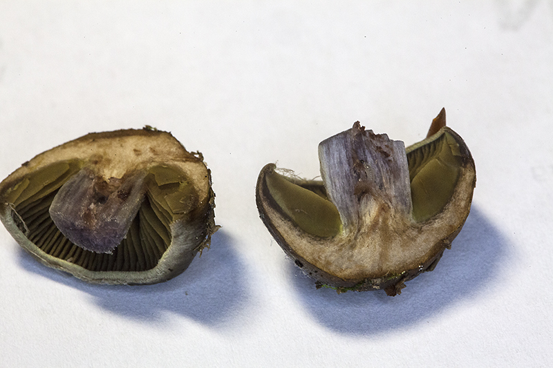 Ich habe mir aufgrund deiner Anregungen Nr. 1 noch einmal vorgenommen; den Schnitt durch den jungen Hut füge ich als Bild bei; ich denke, dass die olivgrüne Lamellenfarbe deutlich rauskommt.
