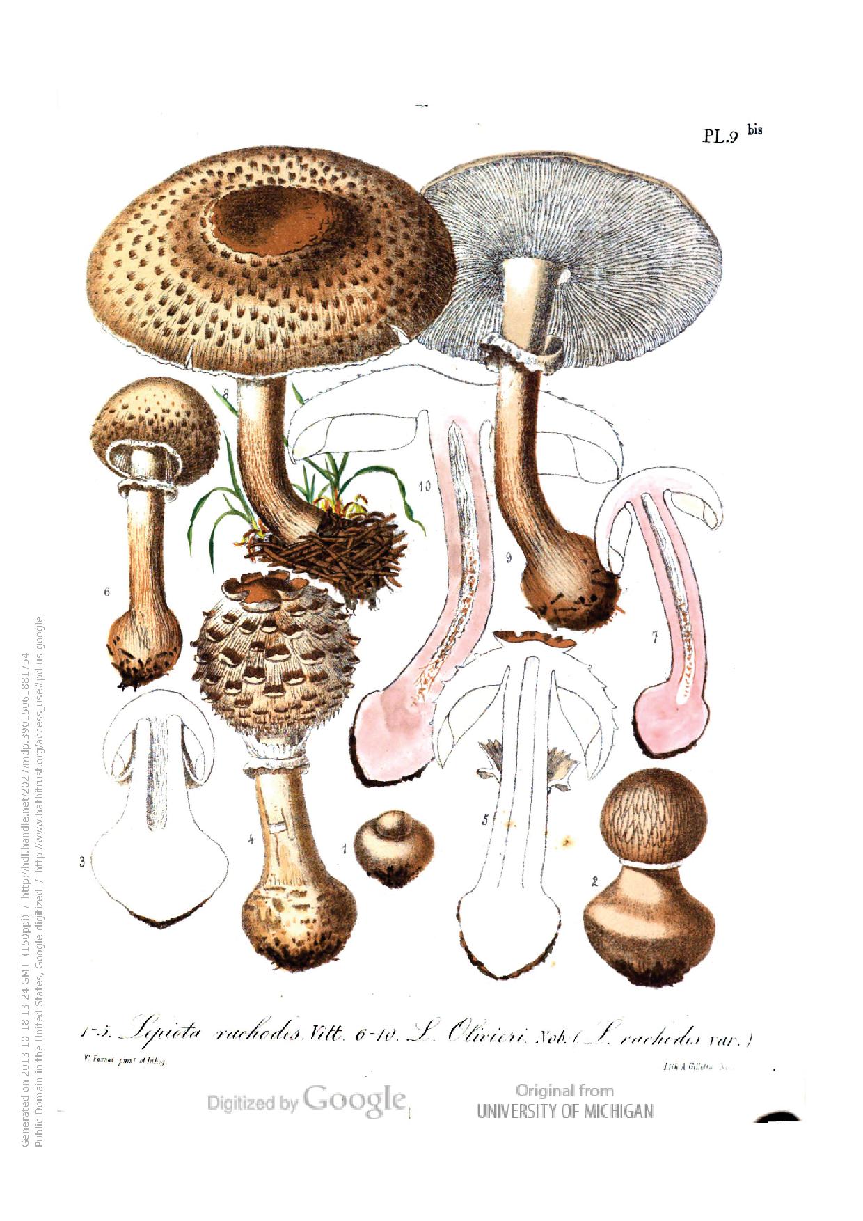Hallo zusammen, anbei Tafel 9bis aus BARLA 1889. Hier findet sich der gesuchte Name quasi nachgekartelt hinter L. olivieri. Gültig wird das aber kaum sein, da m.E. gegen ICN 36.1 verstoßend. Meiner (unmaßgeblichen) Meinung nach könnte man den IF-Datensatz wie folgt verbessern: Lepiota rachodes var. olivieri (Barla 1886) Barla 1889, Flore Mycol. Ill. fasc.2, pl.9bis (nom. inval., Art.36.1). Da angewandte Pilznomenklatur auf Auslegung der ICN-Regeln besteht, sind Gegenvorschläge hochwillkommen. Viele Grüße,