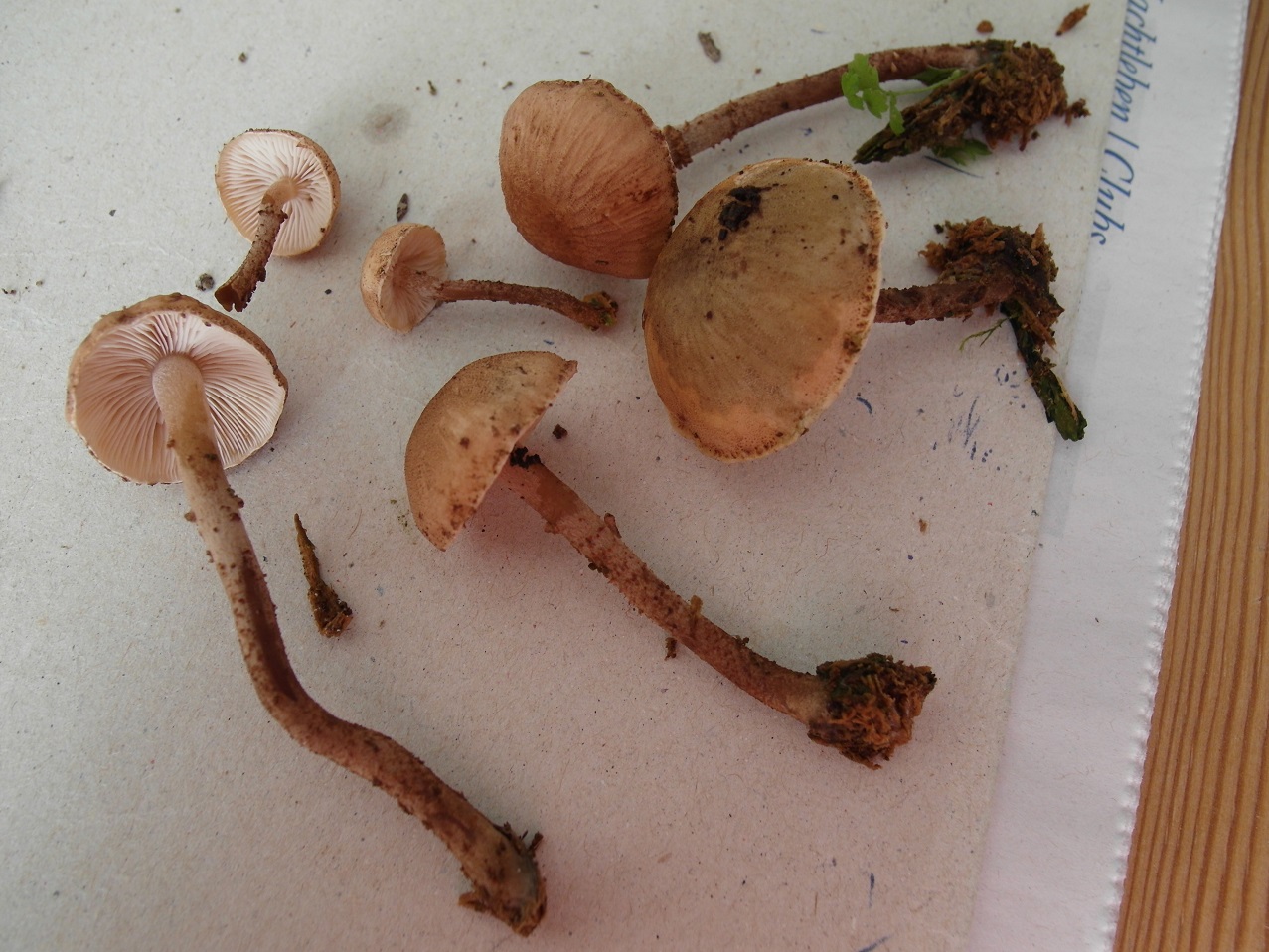 Hallo zusammen! Letztens war ich unter anderem in einem Ahorn-Schluchtwald Pilze suchen. An einem sehr dicken Nadelholzstrunk (Fichte oder Weisstanne) fand ich diese Zeitgenossen mit erdigem Geruch. Ich denke eine Cystoderma ist es wohl sicher. Die genaue Art finde ich jedoch einfach nicht raus (mit Gröger)... Habe mir mal ein paar Gedanken zu möglichen Arten gemacht. -Cystoderma terrei (mei meinen Pilzen konnte ich keine brennhaarartigen Cheilozystiden finden. Ob übersehen? Ich vermute jedoch, dass diese Zystiden recht auffällig wären...) -C. subvinaceum (Die Huthaut verfärbt mit KOH tatsächlich schwach graugrün (ganz schwach auf dem Exemplar mit dem grössten Hut zu sehen. In Realität war die Reaktion schon etwas stärker als auf dem Foto zu sehen). Auch der Standort auf morschem Holz würde passen. Jedoch soll diese Art amyloide Sporen besitzen, die Sporen meiner Pilze würde ich jedoch als inamyloid interpretieren) -C. superbum (meine Exemplare waren hierfür eventuell zu wenig weinrötlich...) -C. adnatifolium (soll jedoch eher eine nordische Art sein) Vielleicht hat mir ja jemand einen Bestimmungstipp! Beste Grüsse Jonas