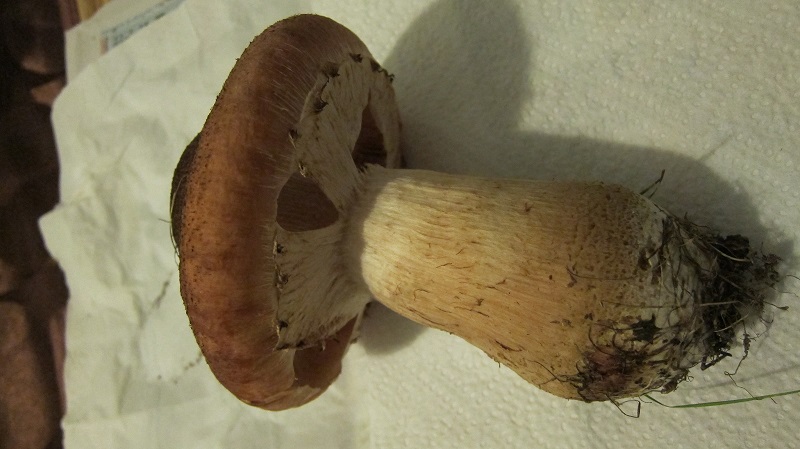 Es war ein einzeln stehender Pilz, ca. 15 cm groß.