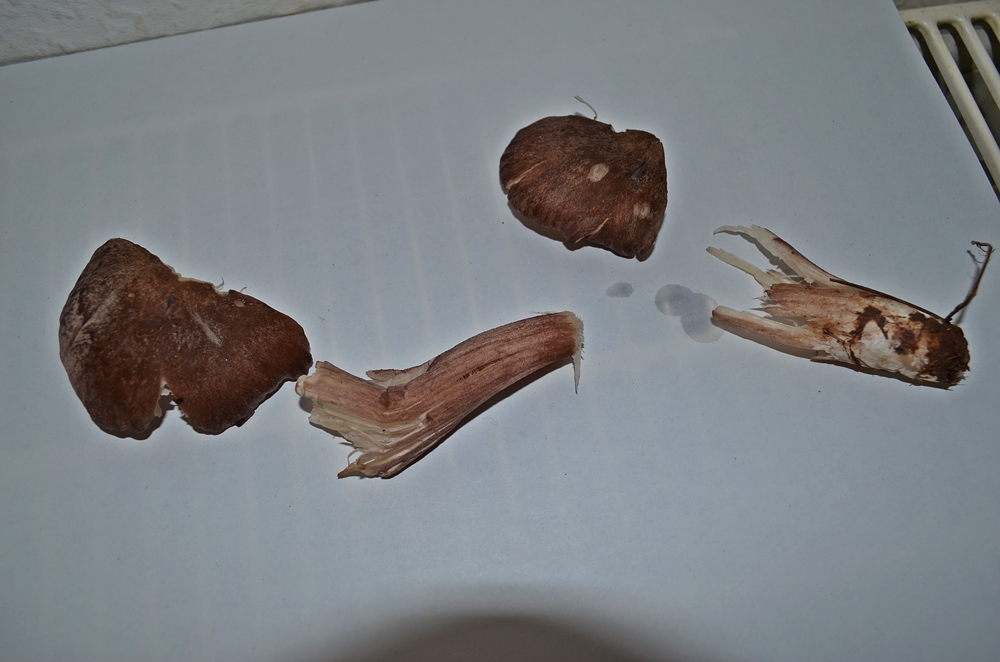 hab ihn geholt und erstmal auf die Heizung gelegt, leider hat er seine violette Farbe schon ein bischen eingebüßt-naja mal schauen wie die Sporenfarbe ist