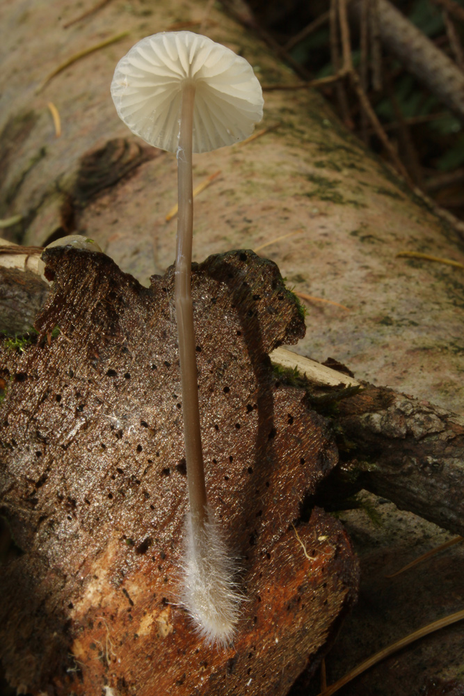 Bei unserer gestrigen Exkursion im Reichswald bei Kleve fanden wir diesen Helmling mit grauem Hut und diesem schönen Basismycel. Er stand auf der Innenseite eines Rindenstücks einer abgestorbenen Birke. Kennt den jemand?