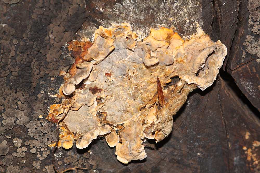 Mitten im Gewusel gab es noch diesen Pilz. Da wir uns nicht sicher waren, ob er mit den "Befall" etwas zu tun hat, stelle ich ihn dazu.