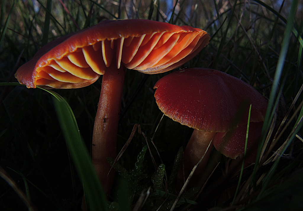 Schönen Feiertag zusammen. Das halloweenige Bild stammt von gestern abend aus dem Rotlichtbezirk im NSG Himmelreich bei Deggendorf(Ndb)und zeigt Hygrocybe coccinea. Ich bitte um Eure Antwort zu folgenden Fragen: - Hat jemand von Euch in diesem Herbst die Saftlingsgründe im NSG Himmelreich bei Deggendorf besucht, z.B. von der Bayri Myk. Tagung aus? Wenn ja, habt Ihr auch im Vergleich zu den Vorjahren sehr viel weniger Saftlinge gefunden oder andere Beobachtungen gemacht?