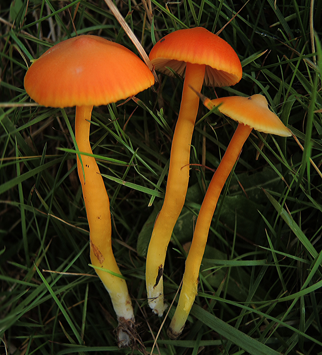 Schon im vergangenen Jahr war an der Stelle eine Gruppe von gelblichen Saftlingen, die sich deutlich von den in einigen Metern Entfernung stehenden Gelben und Orangefarbenen abhob: - bei den meisten Exemplaren deutlich ausgebildete Papille, nicht nur "Auge"