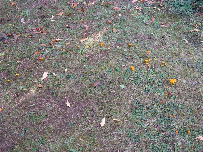 Hallo allerseits, Emil, Rudi und Stephan waren schon nahe dran, und Martin hat sogar die Art genannt. Wegen der anderen Gattungsvorschläge bin ich aber im Zweifel, ob er dies ernst gemeint hat. Für mich war der Pilz zunächst auch ein Rätsel, da ich ihn bisher nur rein gelb gesehen hatte, u. a. auch an der gleichen Stelle im ehemals gepflegten Rasen, dem ich seit 25 Jahren jeglichen Dünger vorenthalten habe. So wachsen da inzwischen Papageien-Saftling, Schwärzender Saftling, Jungfern-Ellerling, Schleimige und Täuschende Erdzunge, Schönleuchtendes Wiesenkeulchen und Weißes Spitzkeulchen. Der gezeigte Bildausschnitt stammt von dieser Gruppe: