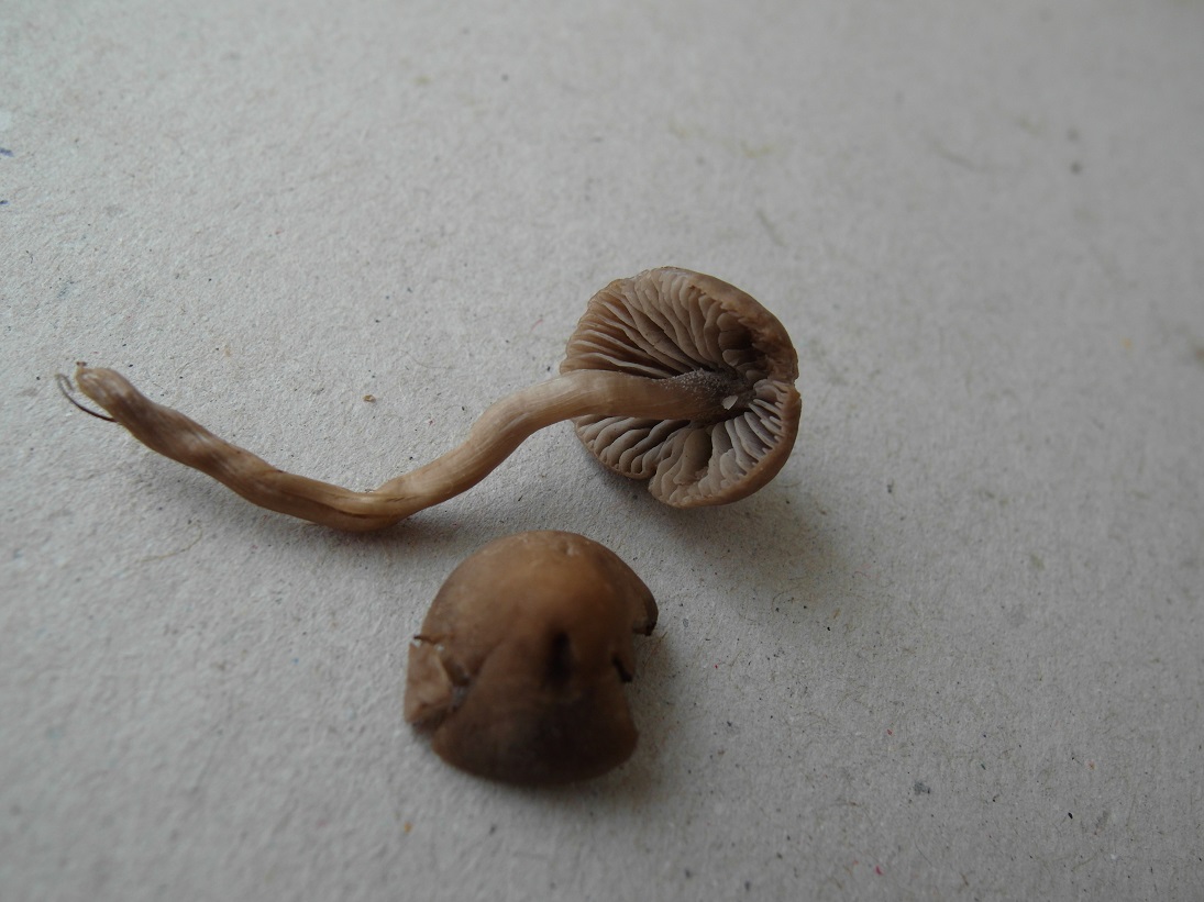 Noch ein Friedhofspilz! Ein kleiner Pilz mit Mehlgeruch und weiss beflockter Stielspitze. Ich bin gar nicht sicher, was das sein soll. Jedoch vielleicht eine Dermoloma?