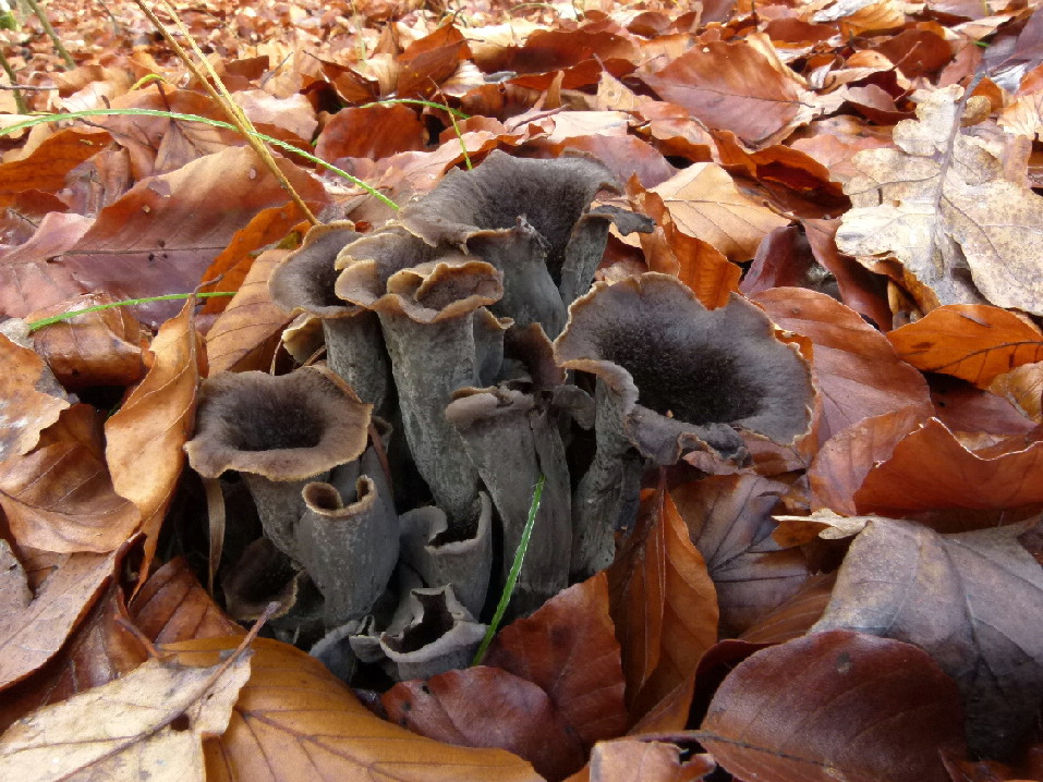 ...durchaus mal im Buchenwald seinen Blick auf den Boden zu senken. Dort gibt es gerade massenhaft (bei uns) Herbsttrompeten in durchaus gutem Zustand.