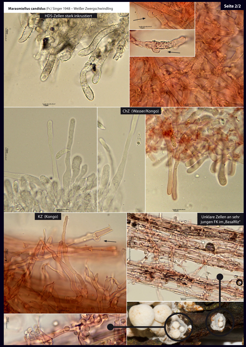 zeigten reinweiße, dünne und anastomisierende Lamellen. Die stets tiefgenabelten reifen FK in der "Nachzucht", nie mit Papille.