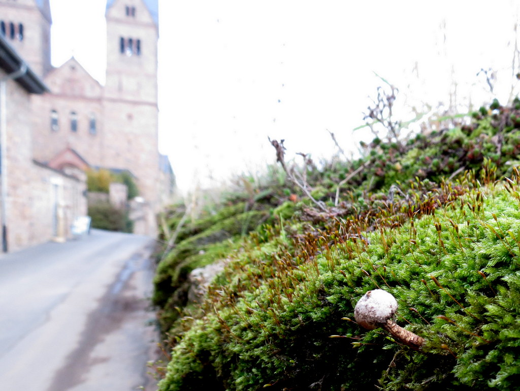 Hallo Forum Bei meinem heutigen Kultur-Ausflug über den Rhein ins benachbarte Bundesland Hessen habe ich eigentlich nicht mit Pilze gerechnet. Da mir aber mittlerweile Tulostomas regelrecht nachlaufen, habe ich dann nebenbei auf der etwa 100 Jahre alten Klostermauer etwas genauer hingeschaut. Ich weiß nicht, ob die heilige Hildegard von Bingen für Zitzen-Stielboviste (Tulostoma brumale) eine Verwendung hatte.