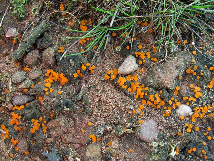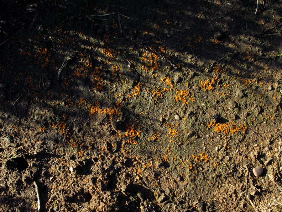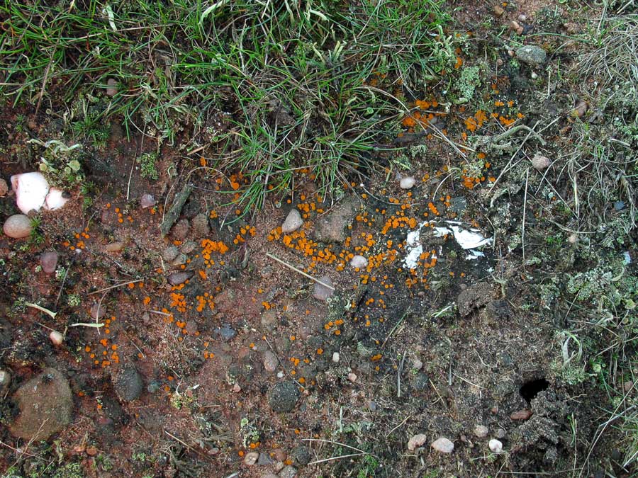 Auf nacktem Erdboden zwischen Gras und Moos. Alte Köttel und Stierkäferhöhle waren wieder vorhanden. Die nächste Kollektion stand vermutlich auf einer alten Brandstelle. Auf dem Boden waren Schlackesteinchen zu finden. Ich habe keine Ahnung was für Brandbeschleuniger die bei Militärübungen benutzen, daß sogar Steine Blasen bekommen.