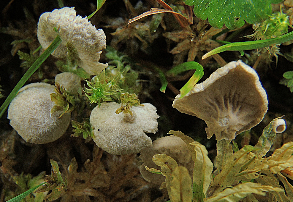 Hallo zusammen, Die Fruchtkörper waren maximal 10-15 mm im Durchmesser, zum Teil mit sehr kurzem leicht exzentrischen Stiel, in einem Fall sogar resupinat mit dem Substrat verwachsen.