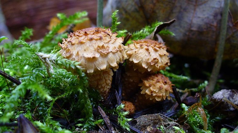hier Pholiota squarrosa - keine ausgewachsenen Exemplare, aber vielleicht bringt ein Bild vom Nachwuchs auch was...