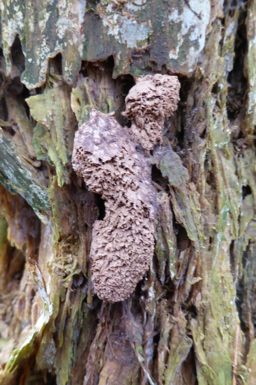 Hallo Jonas Das erinnert mich an einen noch ungeklärten Fund von mir in Zürich. Er produzierte auch massenhaft braunen Sporenstaub. Unter dem Mikroskop waren rundliche "Sporen" zu sehen. Werde sie nochmals genauer untersuchen um festzustellen ob sie warzig/stachelig sind. Was mich bei meinem Fund an der Hypothese Schleimpilz zweifeln lässt, sind eine Art röhrige Kammern im Fruchtkörper. Gruss Paul