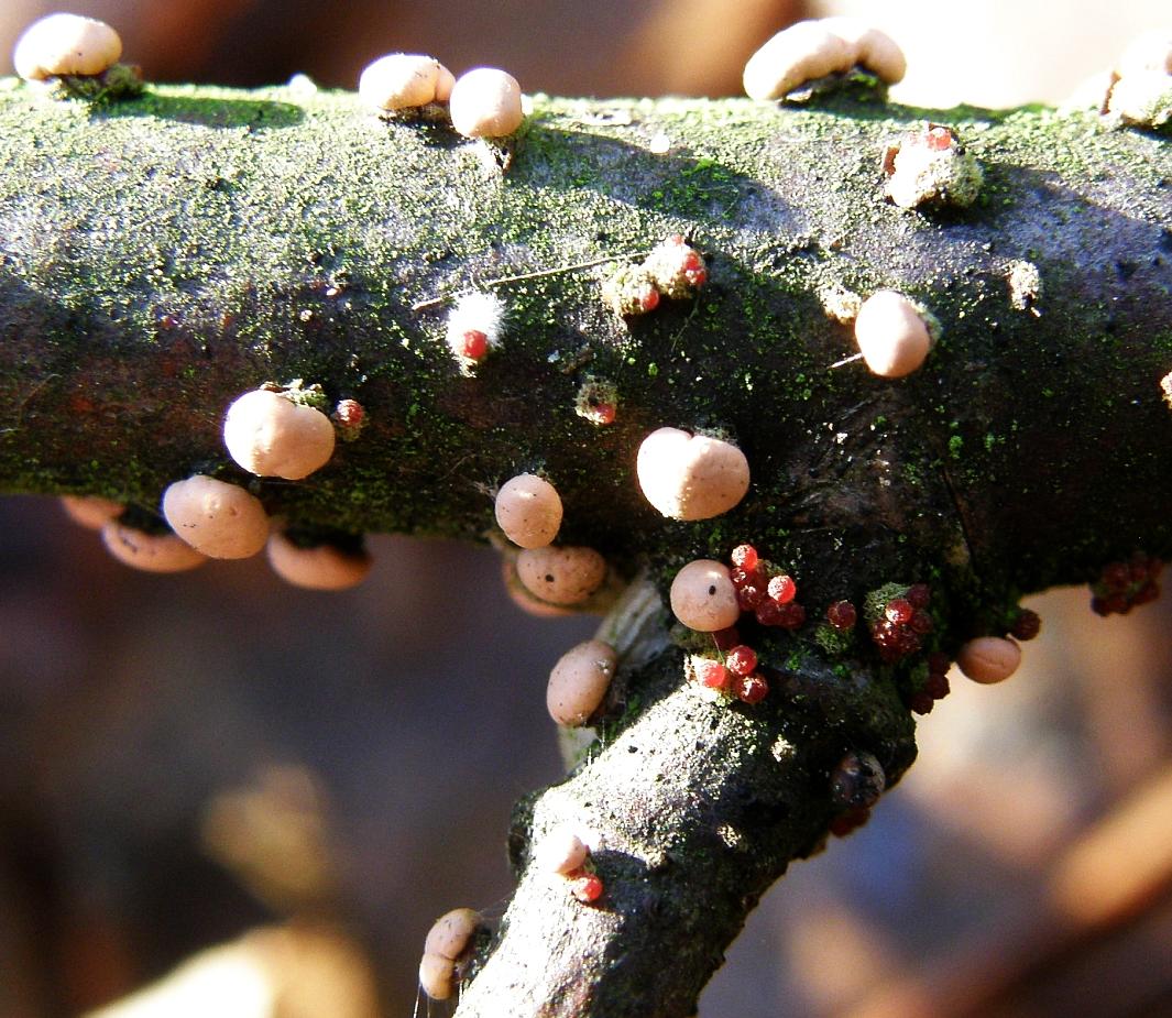 Zu der Nectria parke ich mal noch ein Bild, wo man Hauptfruchtform (die kleinen, roten Kügelchen) und die Nebenfruchtform zusammen sieht. LG, Pablo.