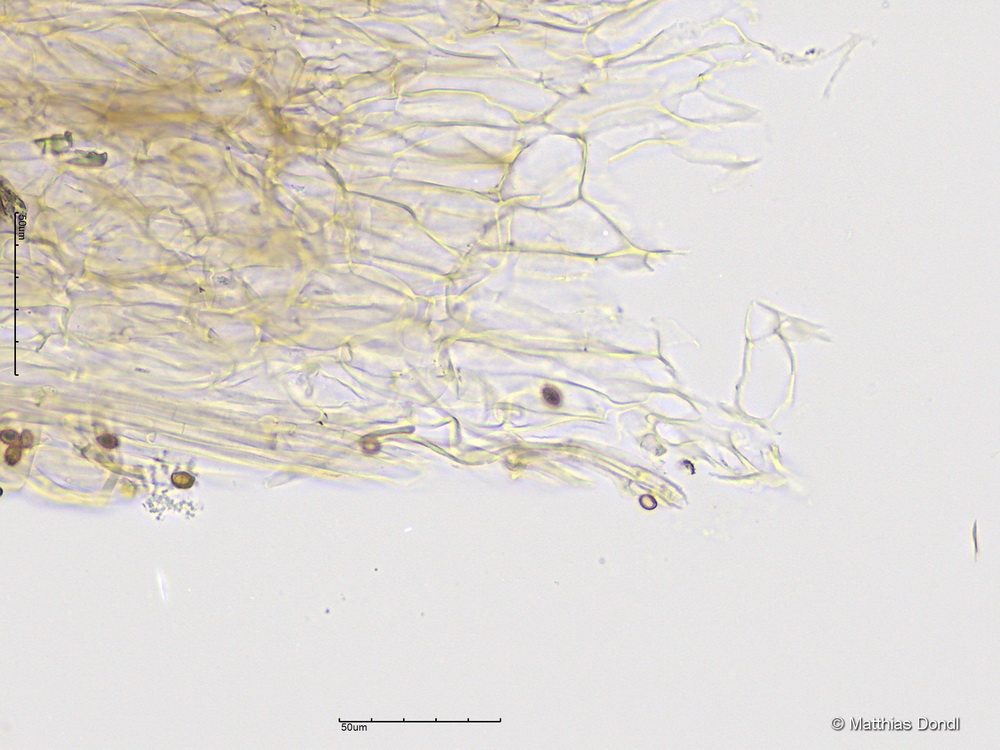 Lamellen von Anfang an dunkelbraun, Sporen kleiner, Lamellenschneide fertil und HDS ohne inkrustierendes Pigment und mit schwach ausgeprägtem Dickwandpigment im Hypoderm.