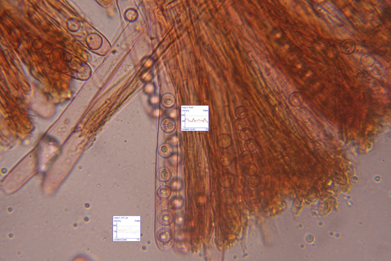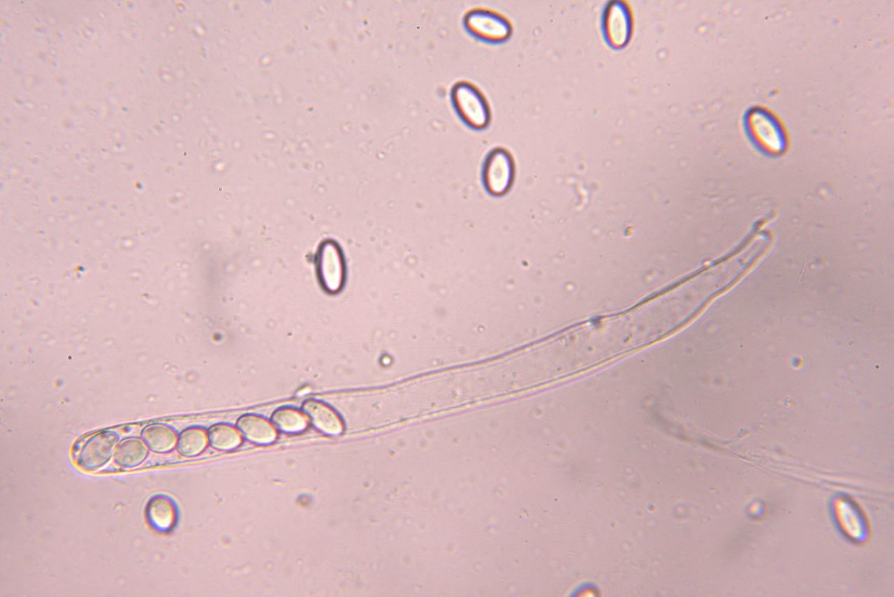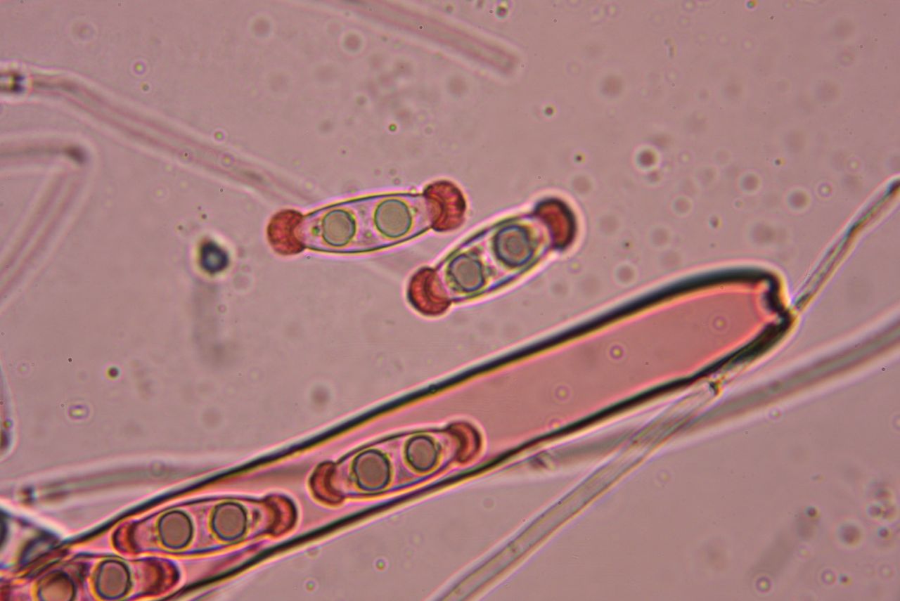 Und speziell für Jürgen ;-) die Mkrofotos. Wunderschöne Sporen, wäre wirklich eine Schande den Pilz nicht zu mikroskopieren. Übersicht 10x mit Asci, Paraphysen und Setae: