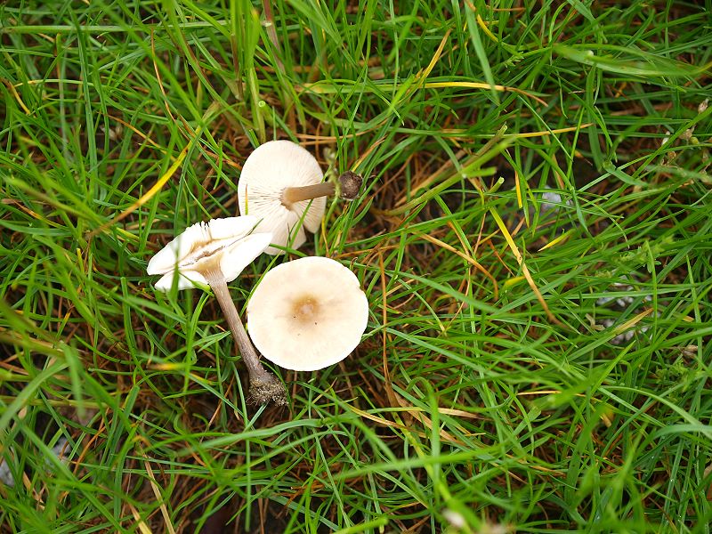 Im Rasen, ohne Begleitbäume, konnte ich diese hellhütigen Pilze ablichten. So eine richtige Idee habe