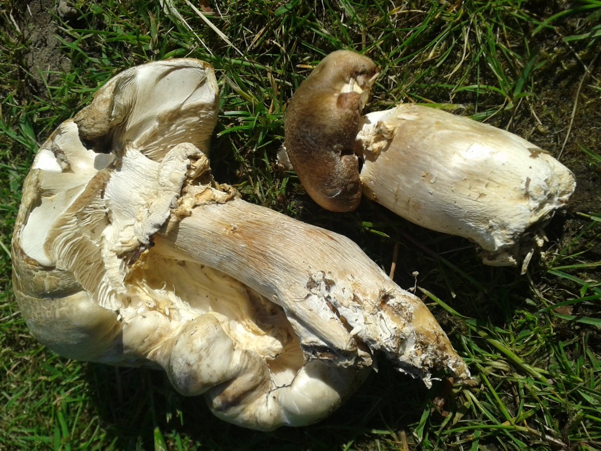 | Liebe Pilzfreunde, diesen Pilzfund bekam ich per Foto aus Hamburg, gefunden in Glinde /östlich v. Hamburg, Sportplatz zahlreich auf Häcksel unter Eiche; Hut bis gut 8 cm, stark verwachsen,höchstwahrscheinlich Hellsporer, Geruch champignonähnlich/unangenehm.