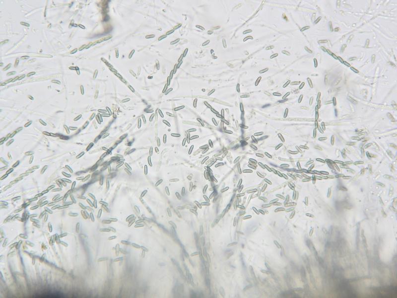 Sporen: 7,5-10 x 2-2,5 µm, leicht allantoid, blass bräunlich, mitunter auch mit bläulichem Ton